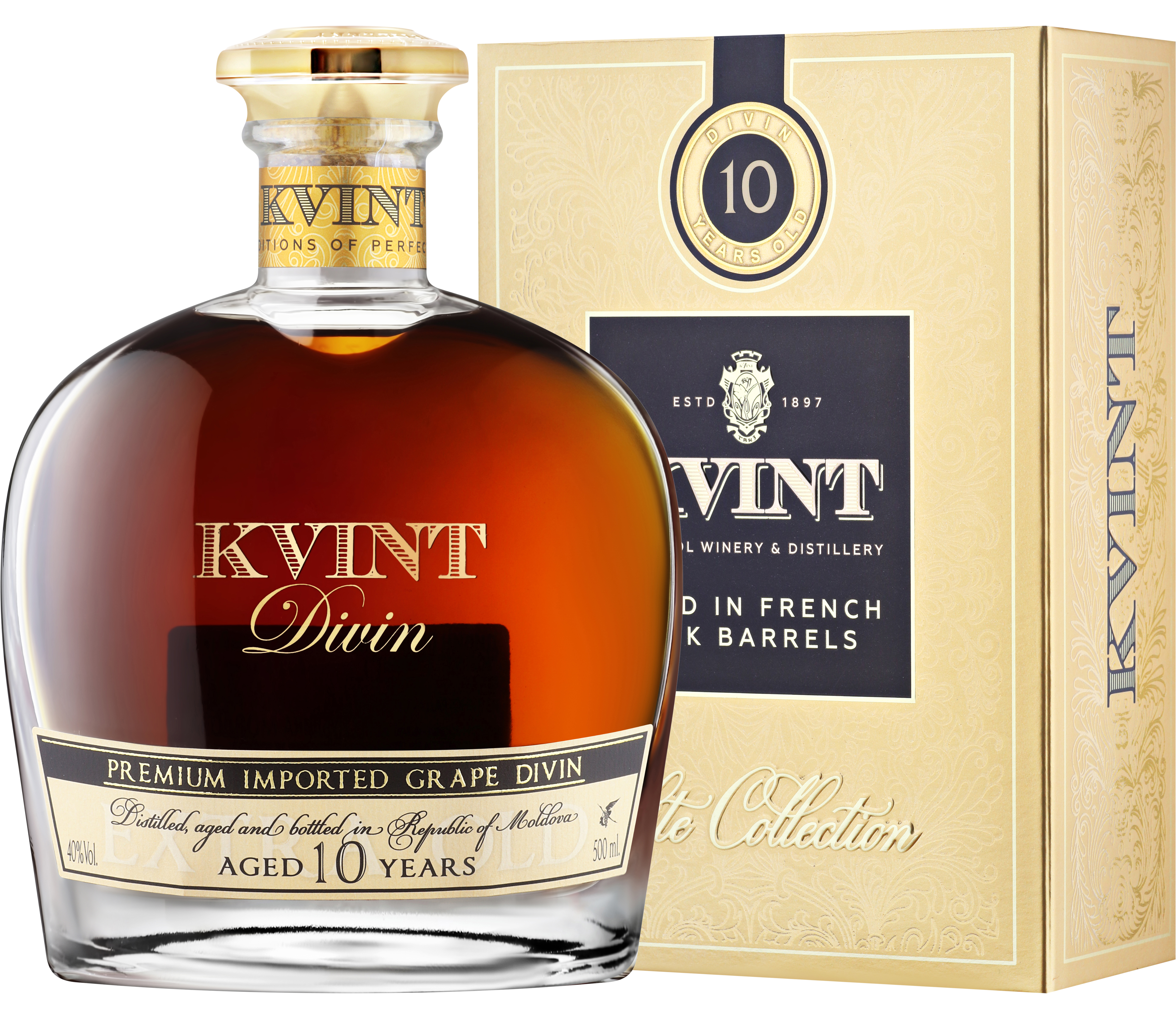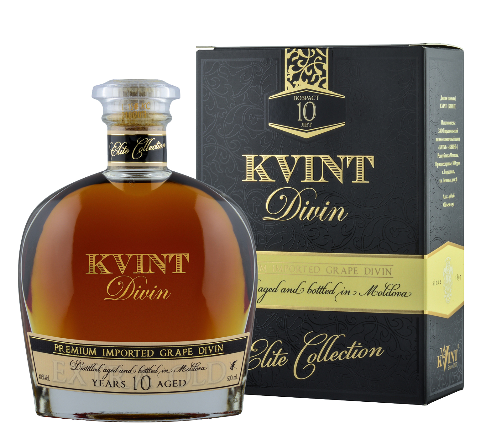 Коньяк Квинт Дивин 10 лет Элит Коллекшн в п/у Kvint Divin 10 years Elite Collection, 0,5