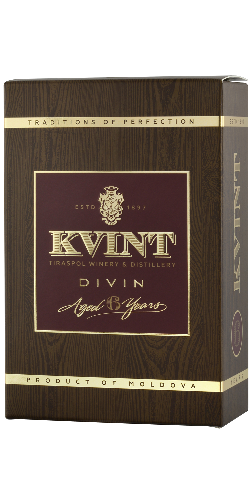 "Свою историю Тираспольский винно-коньячный завод KVINT начал с 1897 года, когда был построен и начал работу очистной склад на Вокзальной улице, где из виноматериала, который сдавали жители окрестных селений, готовили сорокаградусную виноградную водку. Производство дивинов началось здесь лишь спустя четыре десятилетия после открытия – первые дистилляты были заложены на выдержку в 1938-м году. Сегодня предприятие со 120-летней историей является лидером в производстве алкогольной продукции в молдавском регионе. Уникальный климат, богатство почвы, сложность рельефа и близость реки Днестр создают благоприятные условия для получения экологически чистого натурального сырья; современное оборудование, передовые технологии, неповторимость рецептур, верность вековым традициям и вдохновенная работа мастеров KVINT позволяют приготовить превосходные напитки, успешно конкурирующие с продукцией престижных мировых производителей. Завод обладает собственной сырьевой базой, площадь плодоносящих виноградников предприятия достигает 2000 га, на этих землях возделывается более 30 сортов виноградной лозы. В хранилищах KVINT около 11 миллионов литров абсолютного алкоголя дистиллятов для дивина с выдержкой от 1 до 60 лет. Наличие дистиллятов в столь широком возрастном диапазоне позволяет специалистам производства разрабатывать новые бренды дивинов. Ежегодно предприятием выпускается около 20 миллионов бутылок винно-коньячной и ликёроводочной продукции, среди них более 30 наименований дивинов с выдержкой от 3 до 60 лет, а также ординарные и выдержанные вина, водки, джин, бренди. Начиная с 2000 года, Тираспольский винно-коньячный завод работает по международной системе качества ISO:9001 (BVQI). Качество продукции KVINT подтверждено многочисленными наградами, завоёванными на международных и межрегиональных дегустациях и конкурсах: 10 Супер Гран-При, 30 Гран-При и более 300 золотых и серебряных медалей."