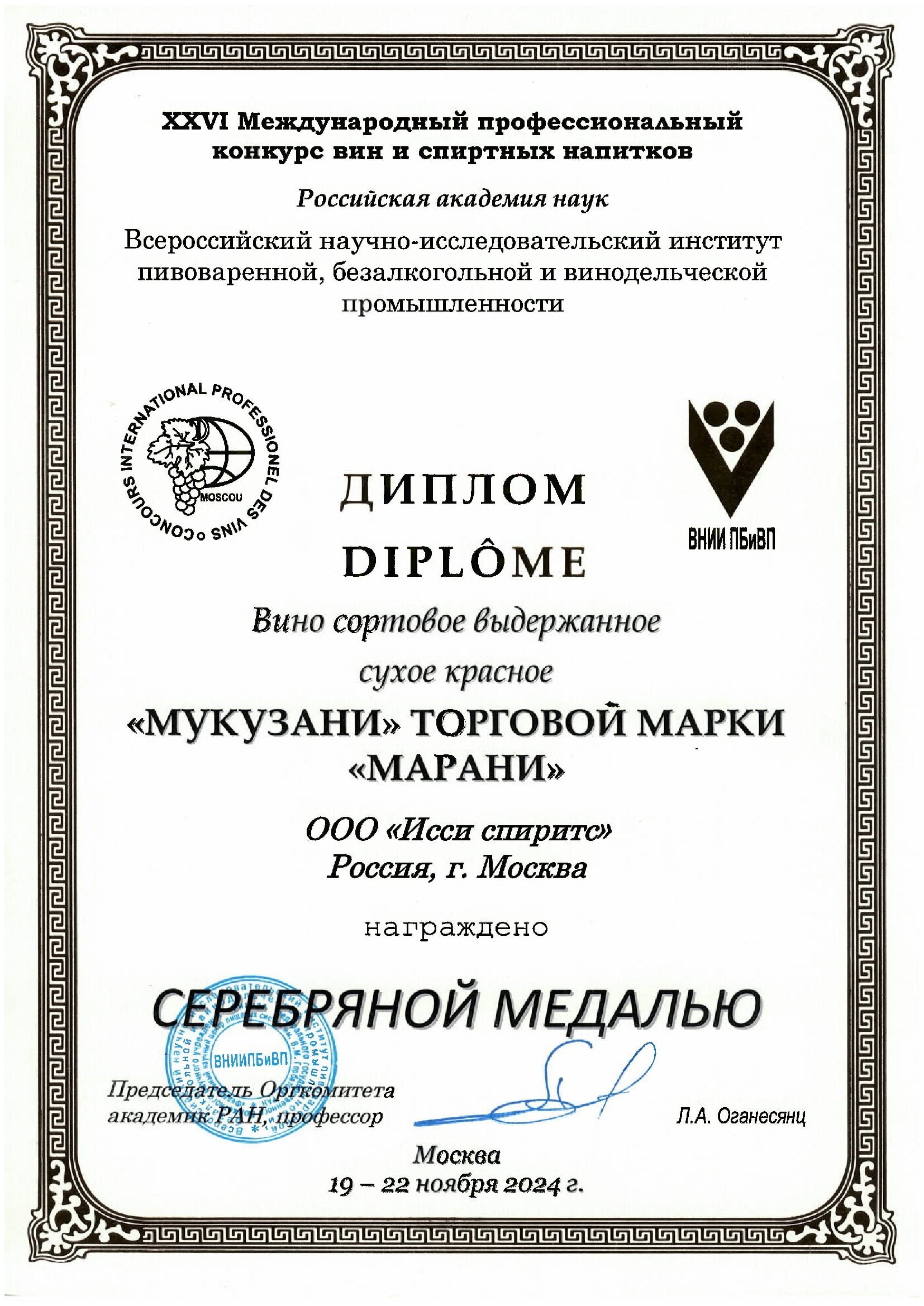 ВНИИ ПБиВП серебряная медаль 2024 International Wine Challenge Silver 2016; Decanter World Wine Awards Bronze 2016; Mundus Vini Summer Tasting Silver 2016; IWSC Silver 2016; Sakura Women Wine Award Silver 2017; China Wine and Spirits Awards Gold 2017; BSRWSC Gold 2017; Decanter World Wine Awards Bronze 2017; International Wine Challenge Silver 2017; Mundusvini Gold 2017; IWSC Bronze 2018; IWC Silver 2018; Decanter World Wine Awards Silver 2018; China Wine and Spirits Awards Gold 2018; Mundus Vini Silver 2018; IWC Bronze 2019; Decanter World Wine Awards Bronze 2019; China Wine and Spirits Awards Gold 2019; IWSC Bronze 2020; Decanter World Wine Awards Bronze 2020; IWC Bronze 2020; IWSC Silver 2021; IWC Silver 2021; Decanter World Wine Awards Bronze 2021; Mundus Vini Gold 2021; IWC Silver 2022; IWSC Bronze 2022; Decanter World Wine Awards Bronze 2022; Mundus Vini Gold 2022; Hong Kong International Wine & Spirit Competition Silver 2022; International Wine Challenge Silver 2023; IWSC Silver 2023; Decanter World Wine Awards Bronze 2023.