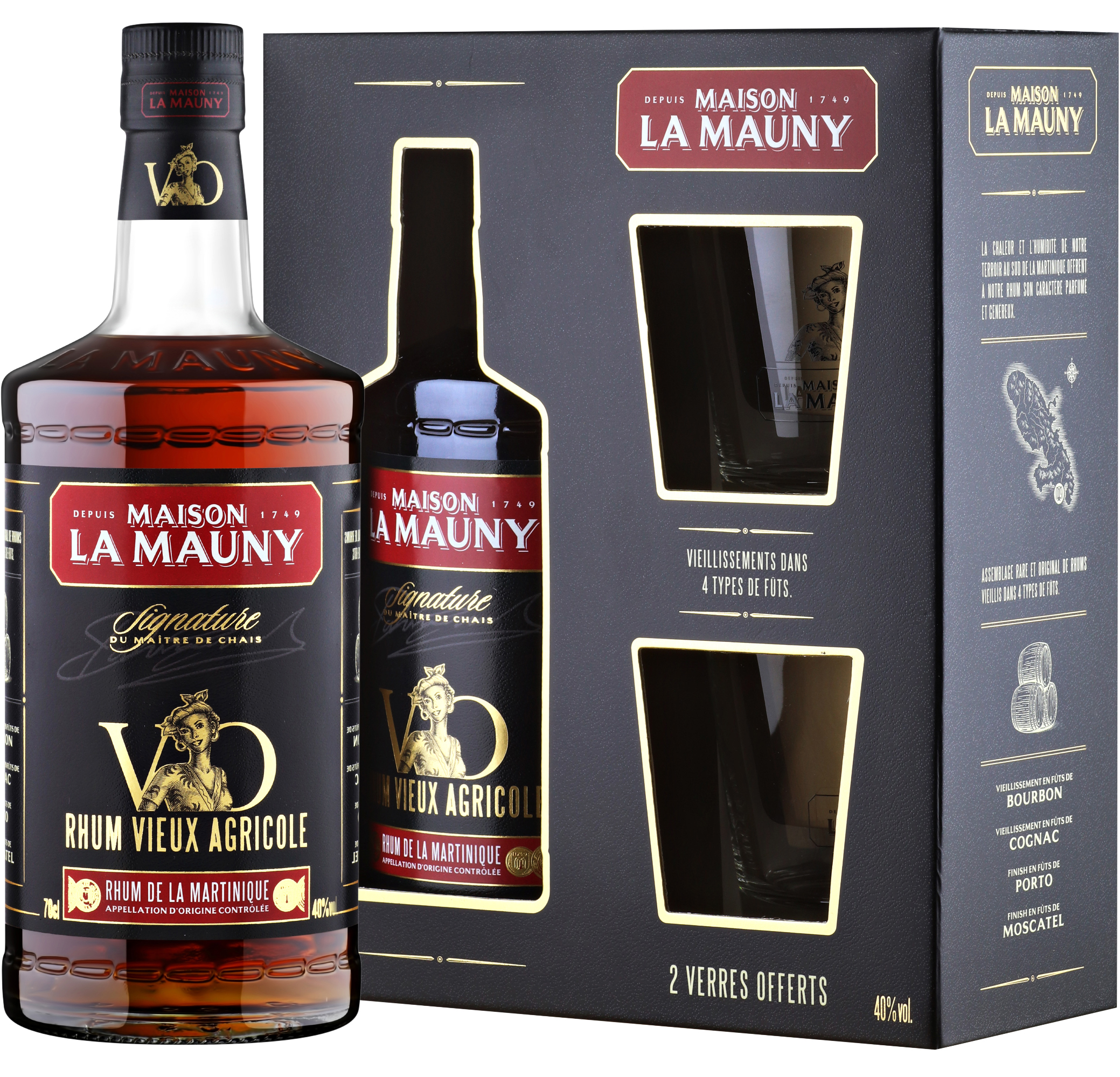 Ром Мезон Ла Мони ВС/ВО в п/у с 2 стаканами Maison la Mauny, 0,7