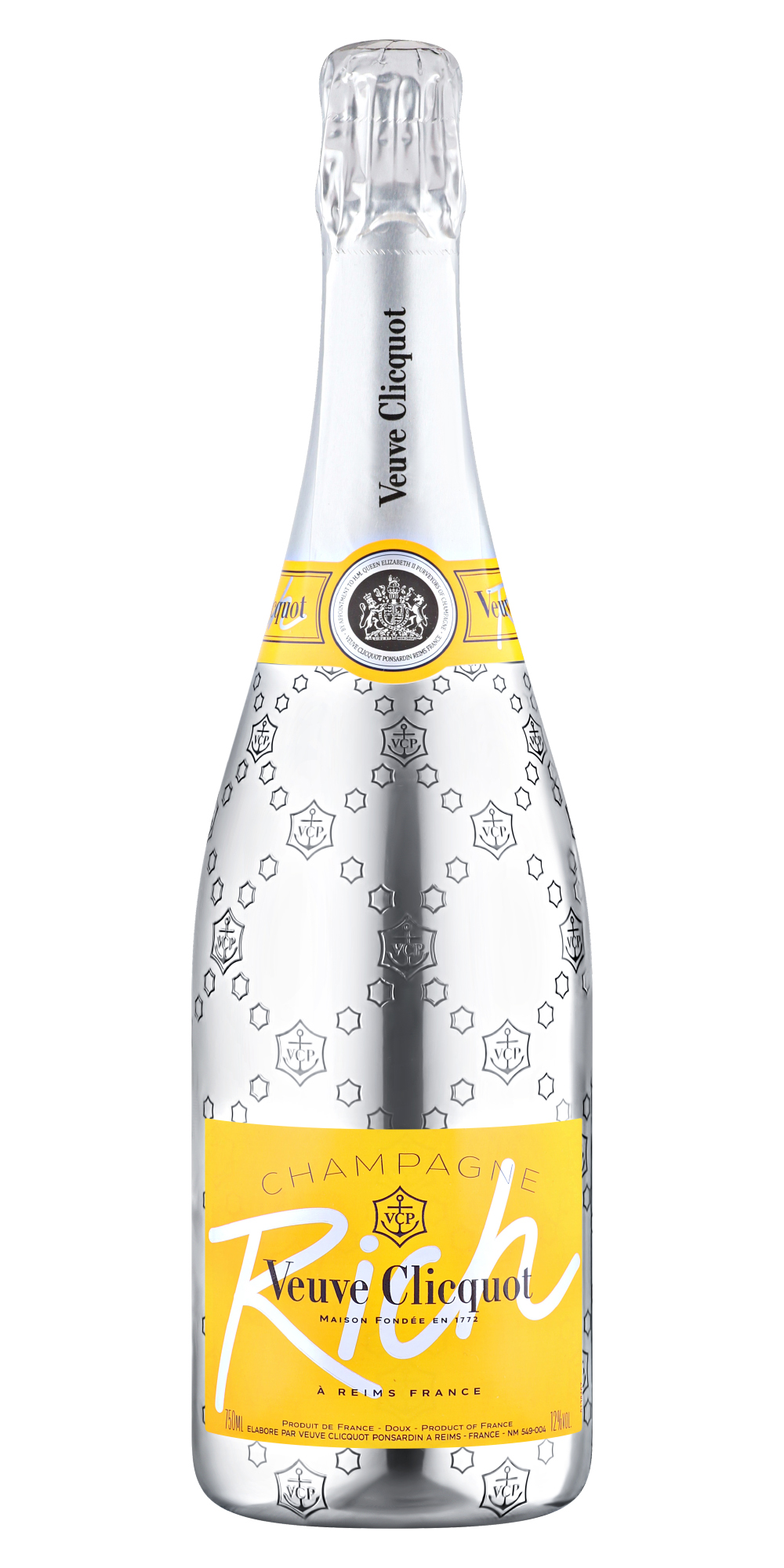 В шампанском Veuve Clicquot, "Rich" White фруктовая нота выведена на совершенно новый уровень. Виноград сорта Пино Нуар (40-45%) в сочетании с высоким содержанием сахара получает новые краски, значительная доля Пино Менье (30-35%) придает вкусу свежесть, яркую фруктовость и изысканность, а небольшая часть Шардонне (20-25%) наполняет его элегантностью. Выдержка шампанского составляет 30 месяцев.nВдова Клико, "Рич" Белое следует использовать только со льдом, предпочтительно в сочетании с одним из следующих ингредиентов: грейпфрутом, ананасом, черным чаем (например, "Earl Grey"), перцем, сельдереем и огурцом. Каждый ингредиент позволяет выделить одну черту характера шампанского по-своему. Попробуйте их по одному и найдите свое любимое сочетание!