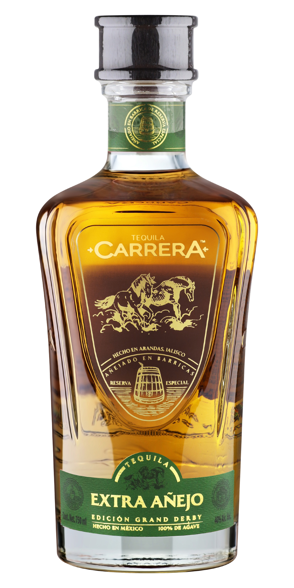 Carrera – на испанском «забег», символ бренда – лошадь, а история за этим такая. В молодости братья увлекались верховой ездой, и почти всё время проводили в тренировках на семейном ранчо Санта Мария. Как-то раз, зимой 1976-го, они решили посоревноваться между собой, выбрали день, когда городская скаковая дорожка Арандаса длиной в 100 родов (1 род = 5,03 м) пустовала, пробрались на неё и поскакали. Они шли почти вровень и уже были близко к финишу, когда заметили, что над финишной чертой висела цепь – поскольку дорожка в этот день была закрыта. Остановиться они уже не успевали, и всё могло закончиться очень печально, но по счастливой случайности чуть отстававшая лошадь неожиданно прибавила, братья финишировали абсолютно одновременно, а их лошади одновременно ударили по цепи, которая от этого двойного удара порвалась. Happy end.