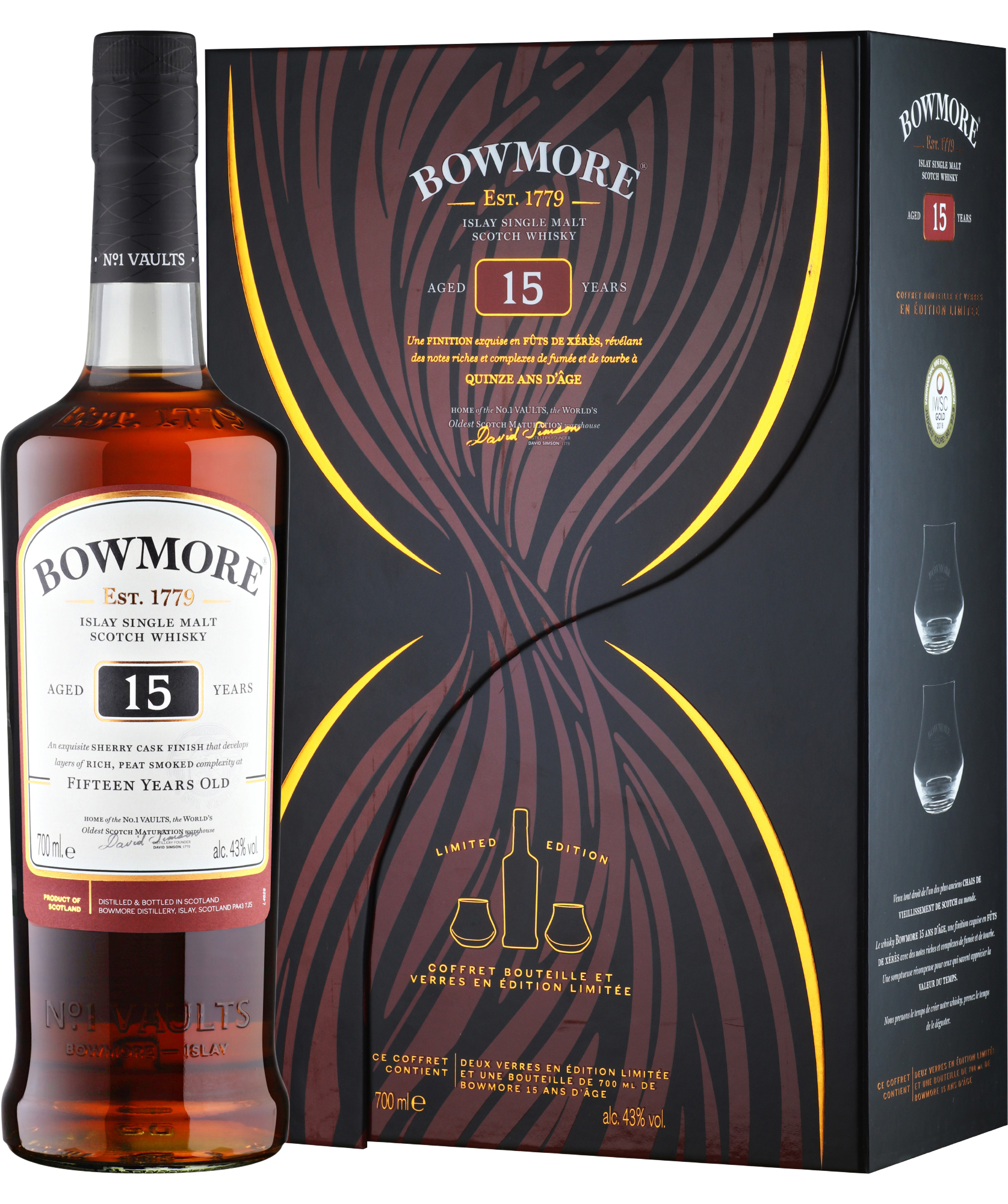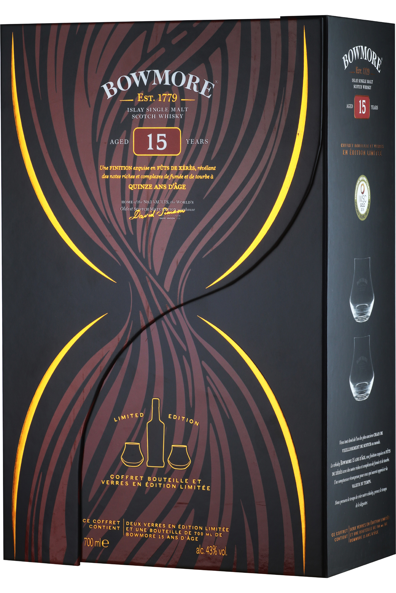 Виски Бомо 15 лет в п/у с 2 стаканами Bowmore 15 y.o., 0,7