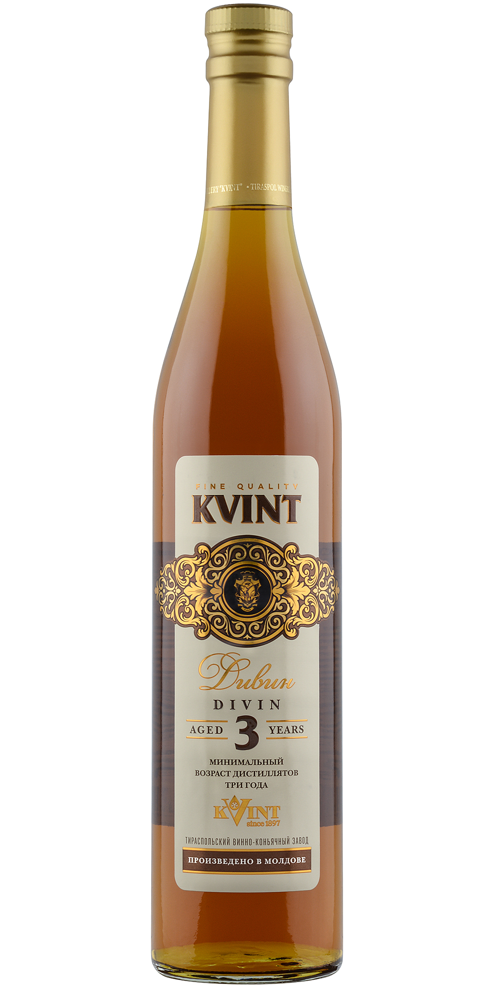 "Свою историю Тираспольский винно-коньячный завод KVINT начал с 1897 года, когда был построен и начал работу очистной склад на Вокзальной улице, где из виноматериала, который сдавали жители окрестных селений, готовили сорокаградусную виноградную водку. Производство дивинов началось здесь лишь спустя четыре десятилетия после открытия – первые дистилляты были заложены на выдержку в 1938-м году. Сегодня предприятие со 120-летней историей является лидером в производстве алкогольной продукции в молдавском регионе. Уникальный климат, богатство почвы, сложность рельефа и близость реки Днестр создают благоприятные условия для получения экологически чистого натурального сырья; современное оборудование, передовые технологии, неповторимость рецептур, верность вековым традициям и вдохновенная работа мастеров KVINT позволяют приготовить превосходные напитки, успешно конкурирующие с продукцией престижных мировых производителей. Завод обладает собственной сырьевой базой, площадь плодоносящих виноградников предприятия достигает 2000 га, на этих землях возделывается более 30 сортов виноградной лозы. В хранилищах KVINT около 11 миллионов литров абсолютного алкоголя дистиллятов для дивина с выдержкой от 1 до 60 лет. Наличие дистиллятов в столь широком возрастном диапазоне позволяет специалистам производства разрабатывать новые бренды дивинов. Ежегодно предприятием выпускается около 20 миллионов бутылок винно-коньячной и ликёроводочной продукции, среди них более 30 наименований дивинов с выдержкой от 3 до 60 лет, а также ординарные и выдержанные вина, водки, джин, бренди. Начиная с 2000 года, Тираспольский винно-коньячный завод работает по международной системе качества ISO:9001 (BVQI). Качество продукции KVINT подтверждено многочисленными наградами, завоёванными на международных и межрегиональных дегустациях и конкурсах: 10 Супер Гран-При, 30 Гран-При и более 300 золотых и серебряных медалей."