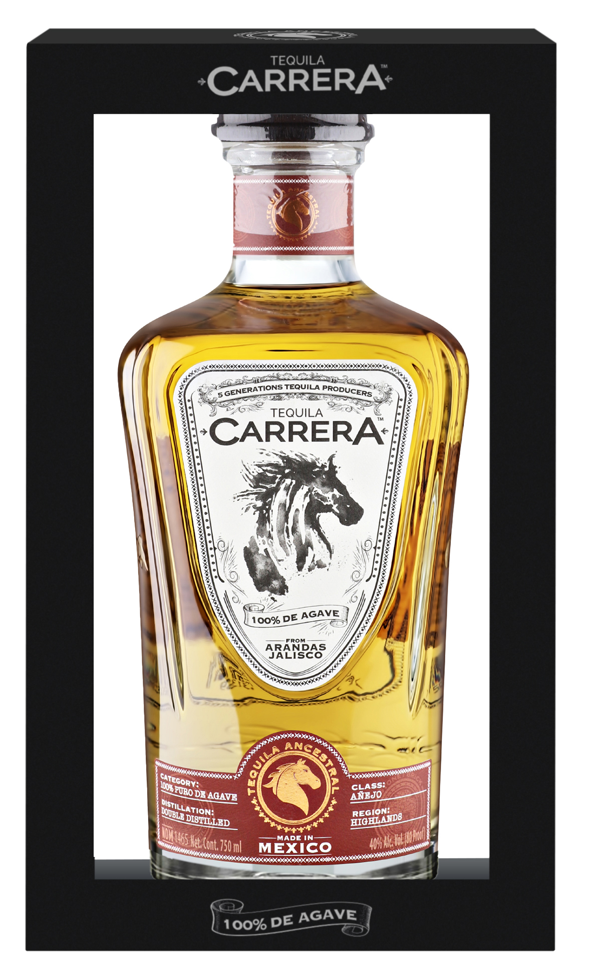 Carrera – на испанском «забег», символ бренда – лошадь, а история за этим такая. В молодости братья увлекались верховой ездой, и почти всё время проводили в тренировках на семейном ранчо Санта Мария. Как-то раз, зимой 1976-го, они решили посоревноваться между собой, выбрали день, когда городская скаковая дорожка Арандаса длиной в 100 родов (1 род = 5,03 м) пустовала, пробрались на неё и поскакали. Они шли почти вровень и уже были близко к финишу, когда заметили, что над финишной чертой висела цепь – поскольку дорожка в этот день была закрыта. Остановиться они уже не успевали, и всё могло закончиться очень печально, но по счастливой случайности чуть отстававшая лошадь неожиданно прибавила, братья финишировали абсолютно одновременно, а их лошади одновременно ударили по цепи, которая от этого двойного удара порвалась. Happy end.