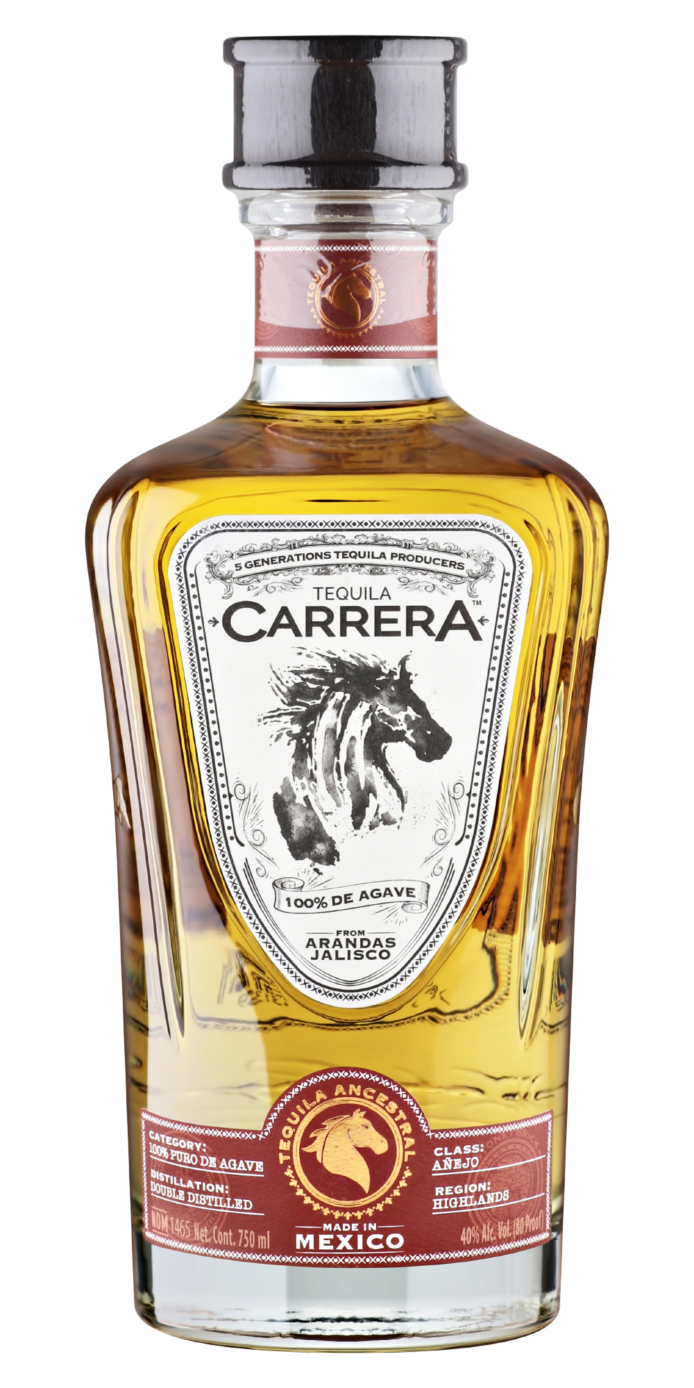 Carrera – на испанском «забег», символ бренда – лошадь, а история за этим такая. В молодости братья увлекались верховой ездой, и почти всё время проводили в тренировках на семейном ранчо Санта Мария. Как-то раз, зимой 1976-го, они решили посоревноваться между собой, выбрали день, когда городская скаковая дорожка Арандаса длиной в 100 родов (1 род = 5,03 м) пустовала, пробрались на неё и поскакали. Они шли почти вровень и уже были близко к финишу, когда заметили, что над финишной чертой висела цепь – поскольку дорожка в этот день была закрыта. Остановиться они уже не успевали, и всё могло закончиться очень печально, но по счастливой случайности чуть отстававшая лошадь неожиданно прибавила, братья финишировали абсолютно одновременно, а их лошади одновременно ударили по цепи, которая от этого двойного удара порвалась. Happy end.
