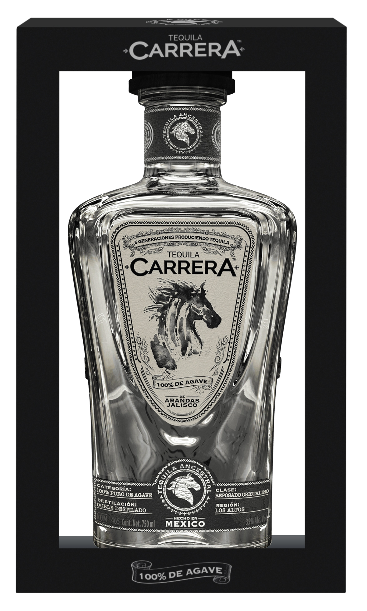 Carrera – на испанском «забег», символ бренда – лошадь, а история за этим такая. В молодости братья увлекались верховой ездой, и почти всё время проводили в тренировках на семейном ранчо Санта Мария. Как-то раз, зимой 1976-го, они решили посоревноваться между собой, выбрали день, когда городская скаковая дорожка Арандаса длиной в 100 родов (1 род = 5,03 м) пустовала, пробрались на неё и поскакали. Они шли почти вровень и уже были близко к финишу, когда заметили, что над финишной чертой висела цепь – поскольку дорожка в этот день была закрыта. Остановиться они уже не успевали, и всё могло закончиться очень печально, но по счастливой случайности чуть отстававшая лошадь неожиданно прибавила, братья финишировали абсолютно одновременно, а их лошади одновременно ударили по цепи, которая от этого двойного удара порвалась. Happy end. Репосадо Кристалино – относительно новая категория, пока не регламентированная Consejo Regulador del Tequila. Такую текилу впервые выпустила в 2011-м дистиллерия Don Julio в свой 70-летний юбилей, после чего её начали делать и другие производители.