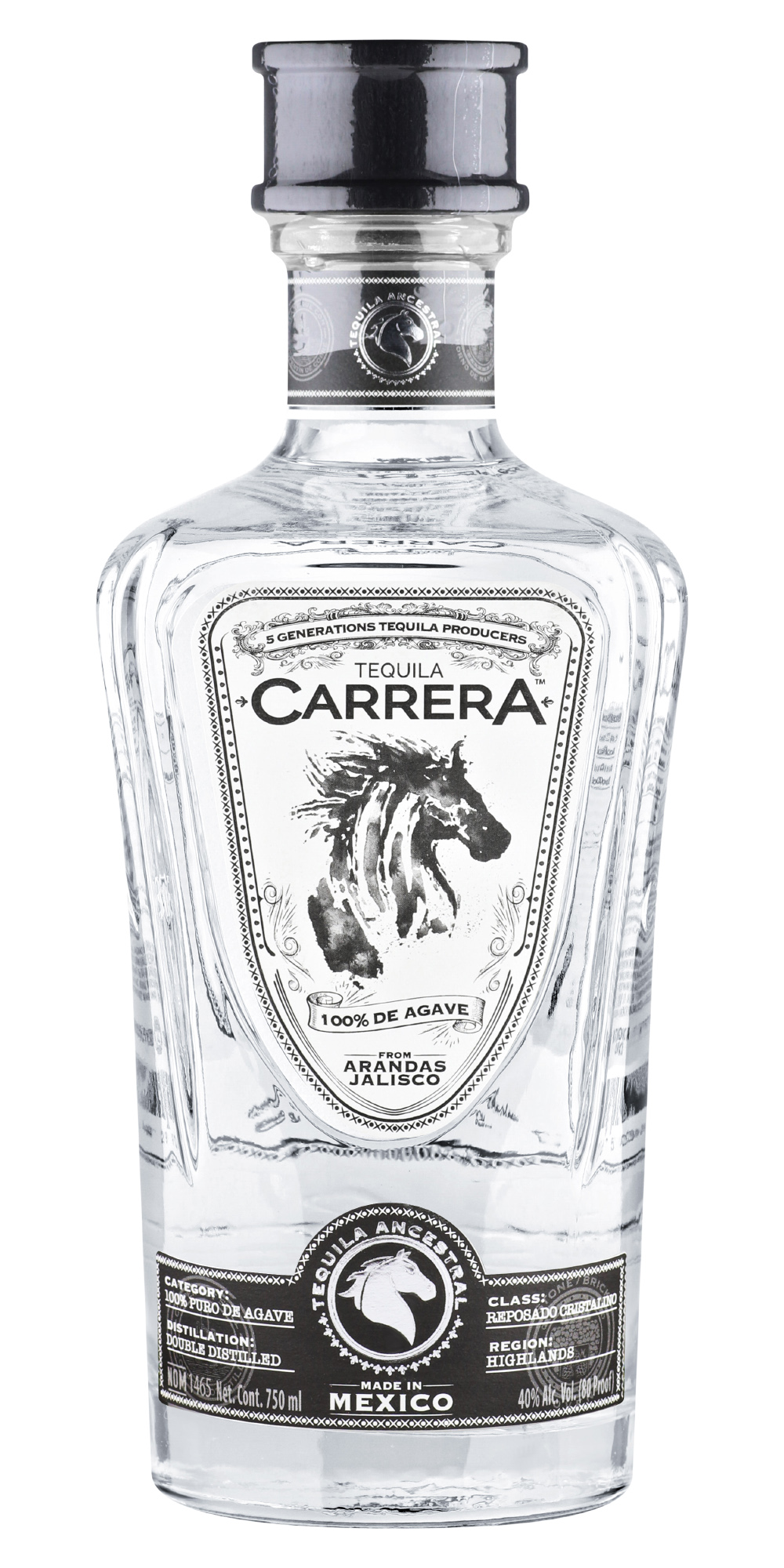 Carrera – на испанском «забег», символ бренда – лошадь, а история за этим такая. В молодости братья увлекались верховой ездой, и почти всё время проводили в тренировках на семейном ранчо Санта Мария. Как-то раз, зимой 1976-го, они решили посоревноваться между собой, выбрали день, когда городская скаковая дорожка Арандаса длиной в 100 родов (1 род = 5,03 м) пустовала, пробрались на неё и поскакали. Они шли почти вровень и уже были близко к финишу, когда заметили, что над финишной чертой висела цепь – поскольку дорожка в этот день была закрыта. Остановиться они уже не успевали, и всё могло закончиться очень печально, но по счастливой случайности чуть отстававшая лошадь неожиданно прибавила, братья финишировали абсолютно одновременно, а их лошади одновременно ударили по цепи, которая от этого двойного удара порвалась. Happy end. Репосадо Кристалино – относительно новая категория, пока не регламентированная Consejo Regulador del Tequila. Такую текилу впервые выпустила в 2011-м дистиллерия Don Julio в свой 70-летний юбилей, после чего её начали делать и другие производители.