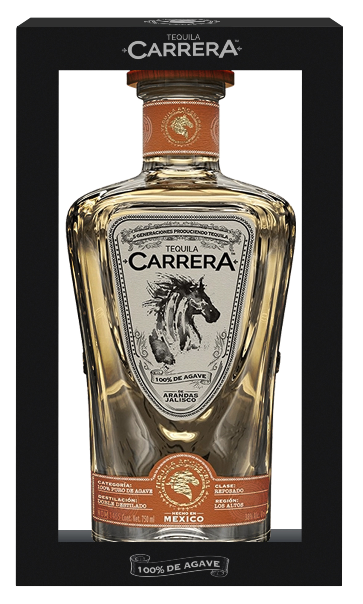 Carrera – на испанском «забег», символ бренда – лошадь, а история за этим такая. В молодости братья увлекались верховой ездой, и почти всё время проводили в тренировках на семейном ранчо Санта Мария. Как-то раз, зимой 1976-го, они решили посоревноваться между собой, выбрали день, когда городская скаковая дорожка Арандаса длиной в 100 родов (1 род = 5,03 м) пустовала, пробрались на неё и поскакали. Они шли почти вровень и уже были близко к финишу, когда заметили, что над финишной чертой висела цепь – поскольку дорожка в этот день была закрыта. Остановиться они уже не успевали, и всё могло закончиться очень печально, но по счастливой случайности чуть отстававшая лошадь неожиданно прибавила, братья финишировали абсолютно одновременно, а их лошади одновременно ударили по цепи, которая от этого двойного удара порвалась. Happy end.